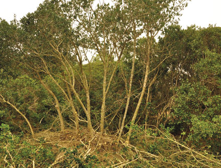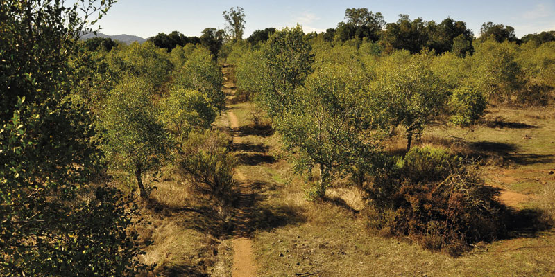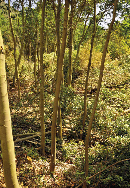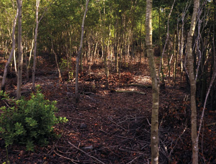 Nuestro bosques recuperados se han quemado por incendios vecinos. Pero al haberse manejado para la recuperación, el fuego les provocó un daño suave, y casi todos los árboles siguieron verdes después del siniestro